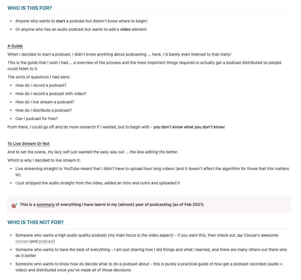 In here, I share all of this and summarised of all the knowledge I have accumulated over the last 9+ months of podcasting 🎙