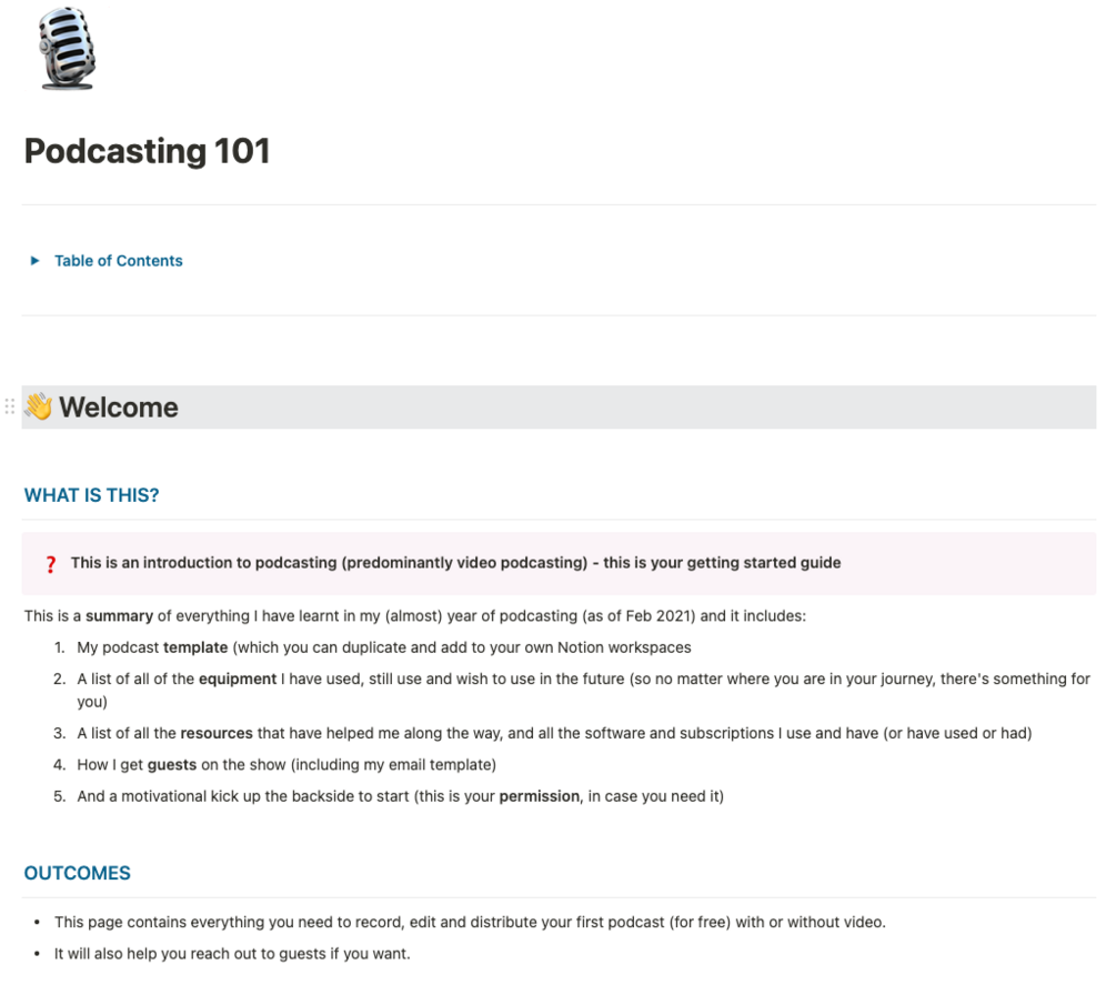 - The Notion template I use to keep track of episodes and guests